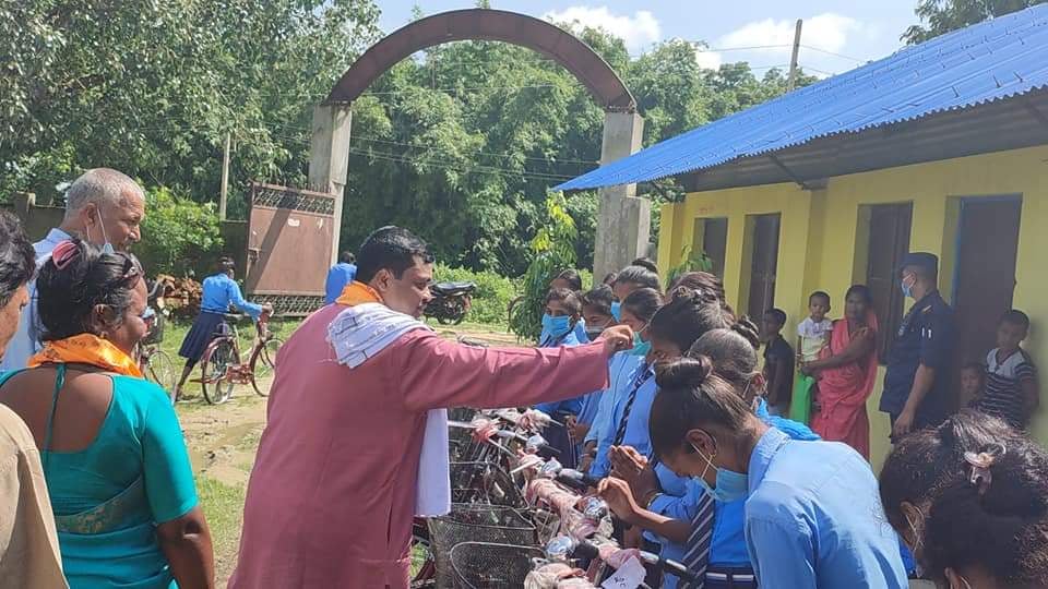 कक्षा ८ तह अध्यनरत श्री राजोवती माध्यमिक बिद्यालय कुशहा अर्नाहा सप्तरीमा ३४ जना छात्राहरुलाई प्रदेश २ का भुमि व्यवस्था तथा कृषि सहकारी मन्त्री शैलेन्द्र प्रसाद साहद्वारा साइकल वितरणग रिएको छ।
