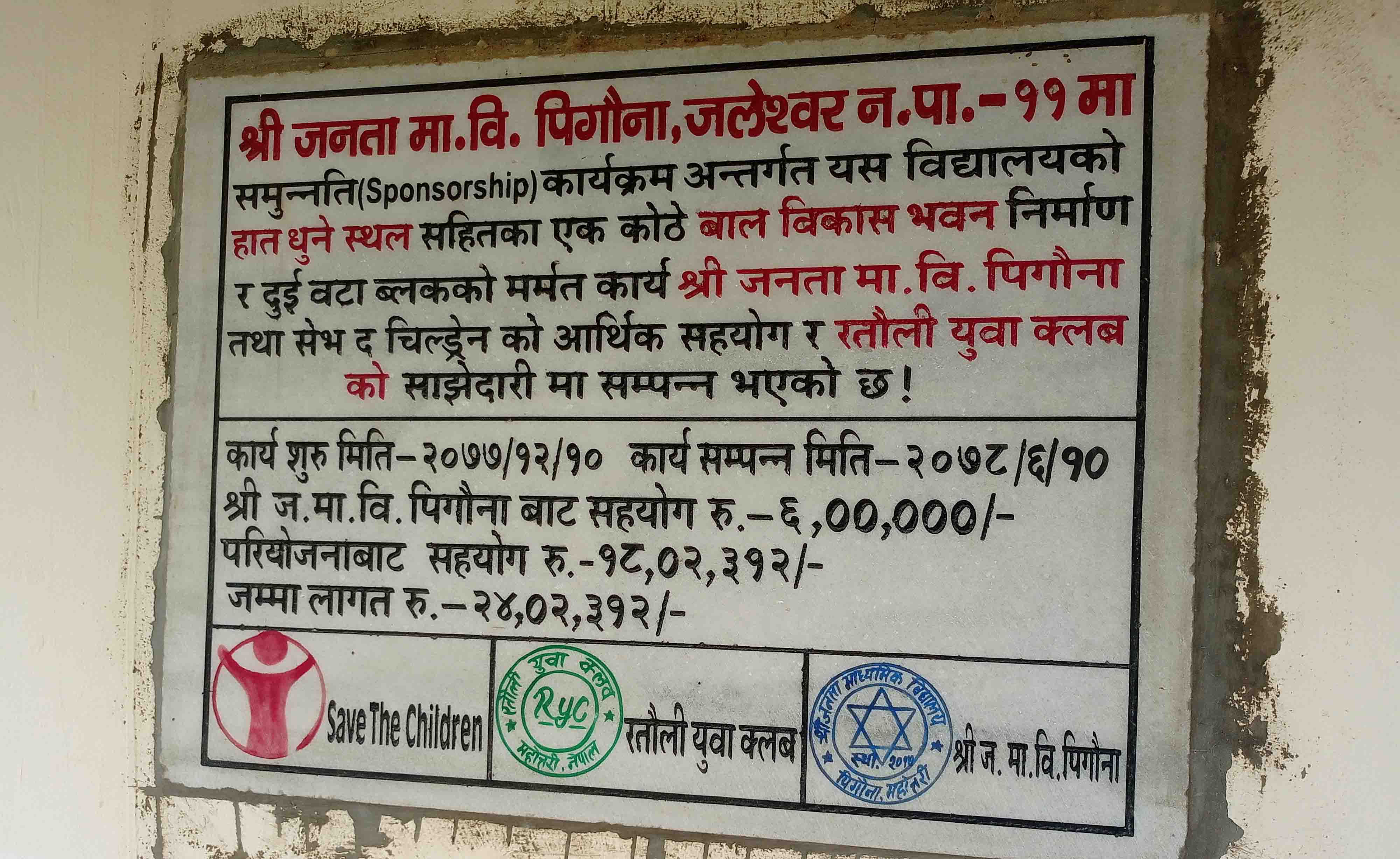 विद्यालयलाई साधनस्रोत सम्पन्न बनाएर गुणस्तरीय शिक्षाको थलो बनाउनसके अशिक्षारुपी अन्धकार हटाउन सकिने दातृसंस्थाको सोच छ । “हाम्रो संस्थाको नाउँ नै ‘सेभ द चिल्ड्रेन’ (बालबालिकाको सुरक्षा) भन्ने छ, यस अर्थमा ससाना नानीहरु शिक्षाको अवसरबाट वञ्चित नहुनु परोस् भन्ने हाम्रो मुख्य ध्येय हुन्छ” पिगौना माविलाई रतौली युवा क्लवमार्फत भौतिक र शैक्षिक विकासमा सहयोग गरीरहेको सेभ द चिल्ड्रेन बर्दिबास कार्यालयका बाल नीति विज्ञ झम्केश्वर ओझा भन्नुहुन्छ, “बाल सरोकारका क्षेत्रमा हाम्रो निरन्तर चासो रहन्छ ।” सेभ द चिल्ड्रेनको मुख्य नीति नै बालबालिकालक्षित शिक्षा, स्वास्थ्य, संरक्षण र जिविकोपार्जनसँग सम्बन्धित रहेको हुँदा यस क्षेत्रका काम संस्थाको चासोभित्रका हुने ओझाले स्पष्ट पार्नुभयो ।
