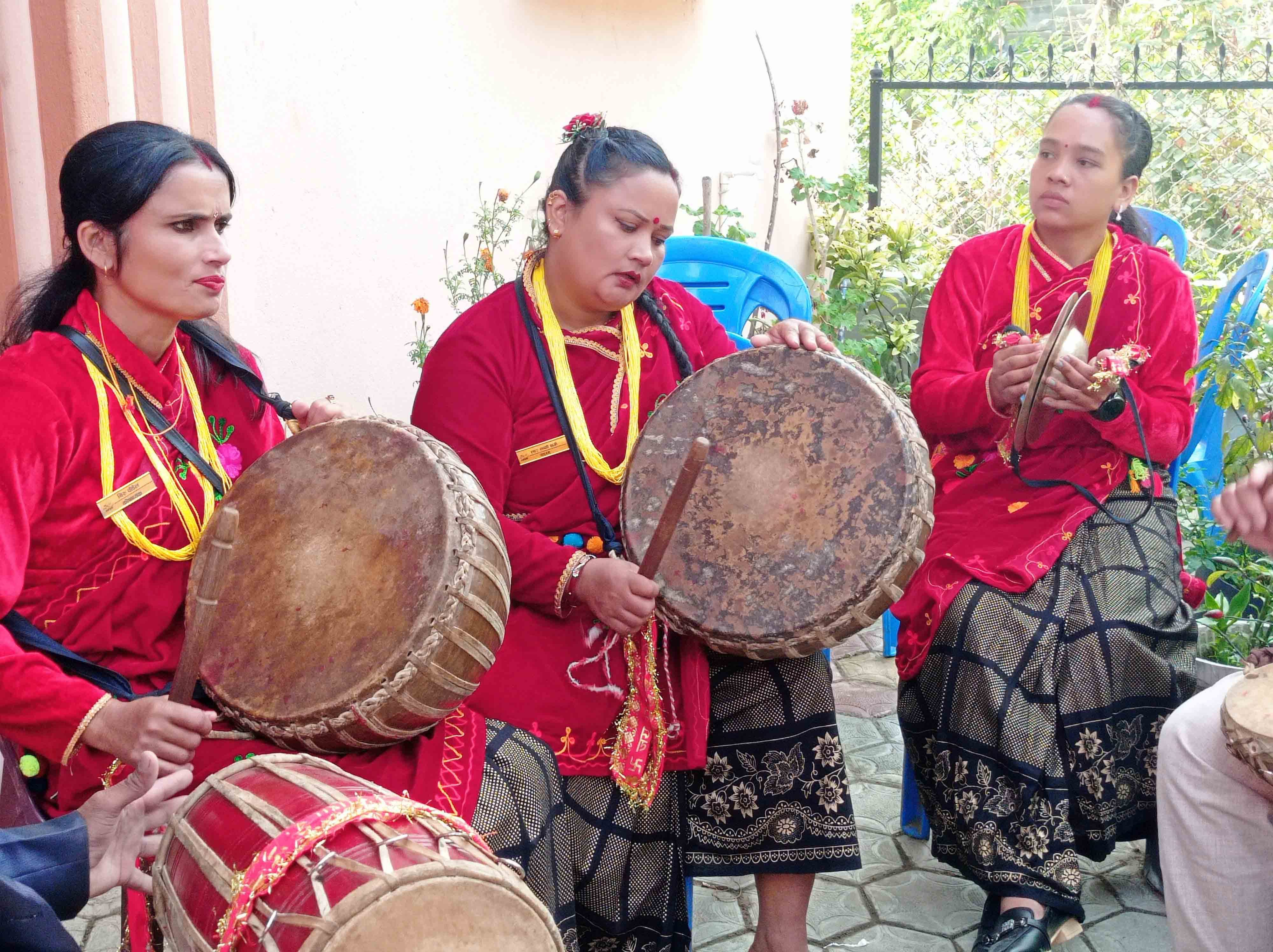 बाहुन/क्षत्री महिला पनि घन्काउँदै नौमती बाजा