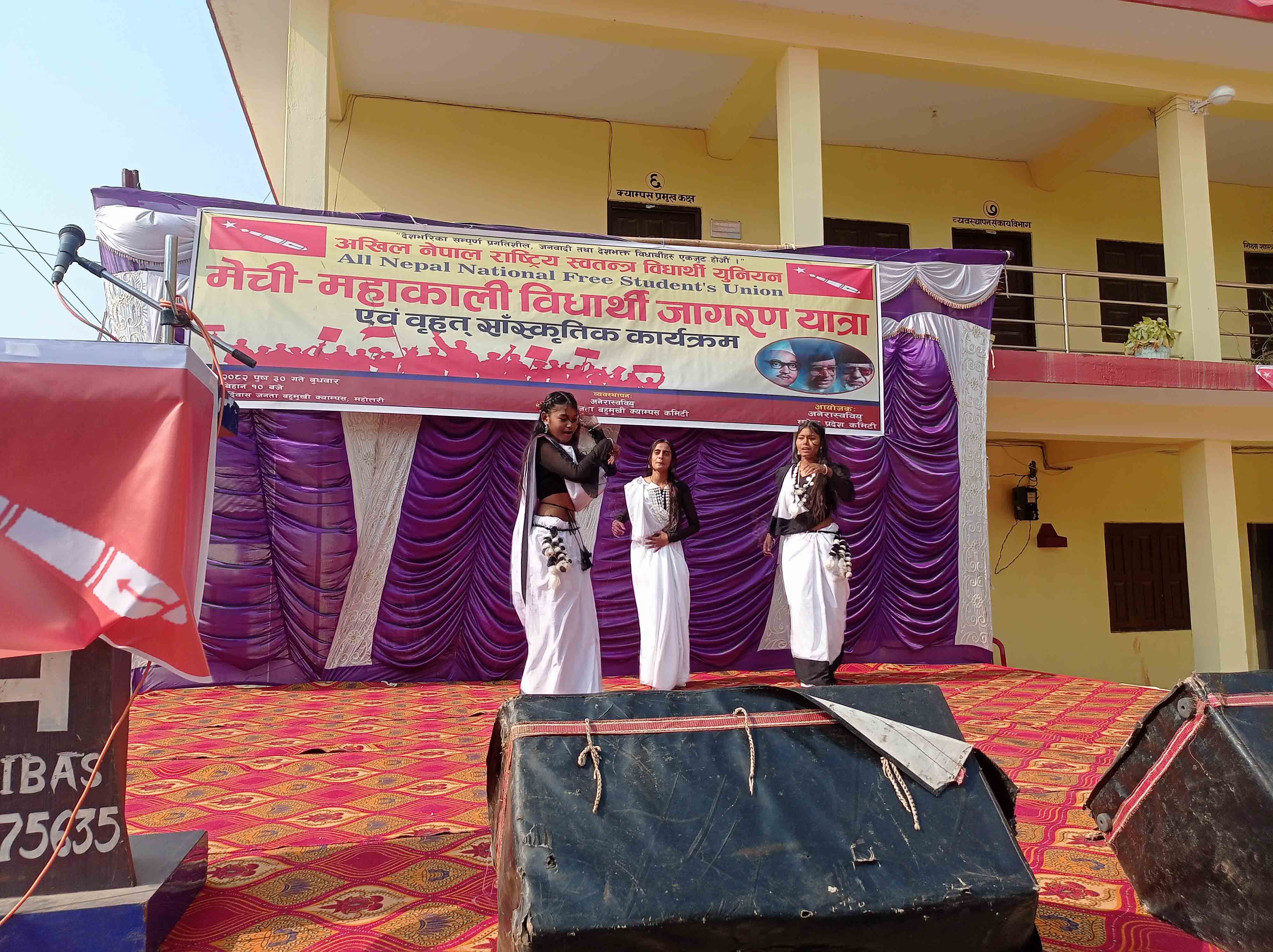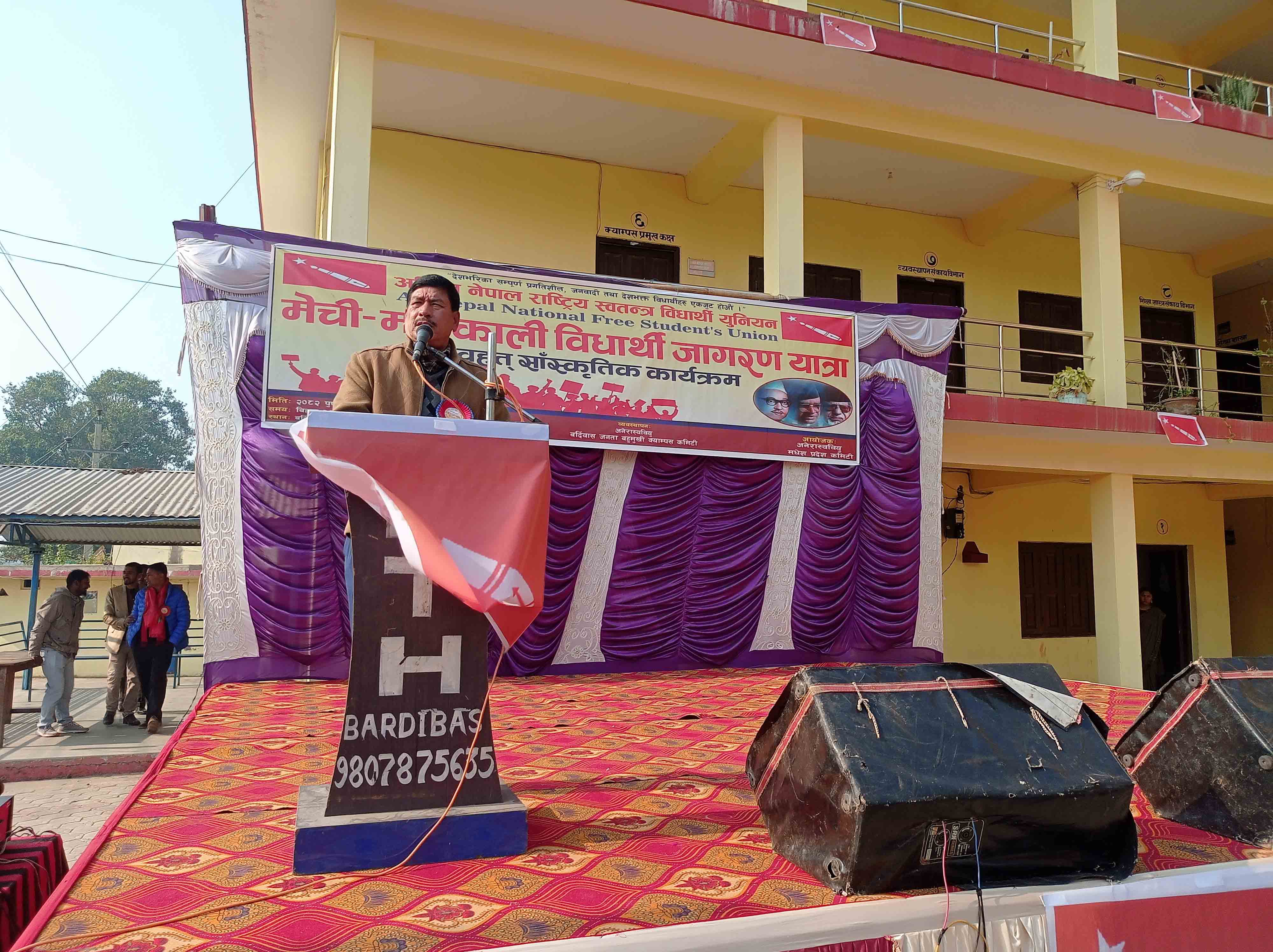 अनेरास्ववियुको मेची–महाकाली विद्यार्थी जागरण यात्राले आज बुधबार बर्दिबासमा वृहत् साँस्कृतिक कार्यक्रमसँगै विद्यार्थीलक्षित जागरणसभा सम्पन्न गरेको छ । अनेरास्ववियुका केन्द्रीय अध्यक्ष दीपक धामी, महासचिब अञ्जना सिवाकोटी र सचिब समिमबाबु पठानसहितका पदाधिकारीको उपस्थितिमा वृहत् साँस्कृतिक कार्यक्रमसँगै जागरणसभाको कार्यक्रम सम्पन्न भएको हो । यो अनेरास्ववियुको मधेश प्रदेश स्तरीय कार्यक्रम रहेको जानकारी दिइएको थियो ।
